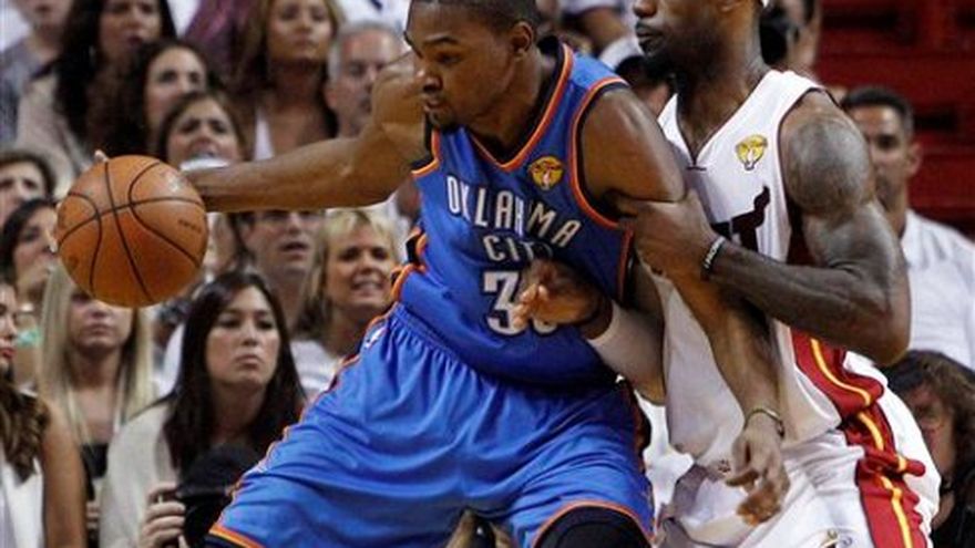 Kevin Durant no puede ocultar la decepción que sufrió en la final de la NBA. Y ahora, se topa con LeBron James, uno de los principales responsables de su amargura, cada vez que entra a la cancha. La final terminó en Miami hace apenas unas tres semanas, cuando James celebró al fin un título y sólo hizo una pausa breve en su festejo para dar un abrazo de consolación a Durant, el jugador derrotado. Durant admite que le causa cierta molestia llegar al gimnasio y encontrarse cada día a James. "Sí, sí, pero no hay nada que hacer", dijo Durant el martes. "El es ahora mi compañero. Soy un jugador que busca lo mejor para el equipo. No puedo permitir que esto me afecte. Hay algo más importante. Es difícil perder la final y jugar junto al tipo contra quien que perdiste en cinco partidos. Trato de superar esto y sigo siendo un buen compañero". Kobe Bryant estuvo en la misma situación que Durant hace cuatro años. Debió sacudirse la decepción de una derrota en la final frente a los Celtics de Boston para concentrarse en su participación en los Juegos Olímpicos. Consideró que es normal que un jugador no quiera volver a las canchas durante algunos días, pero señaló que Durant ha tenido tiempo suficiente para reponerse. "Pero... yo no tuve que jugar en la selección olímpica con Ray Allen, Paul Pierce y (Kevin) Garnett), dijo Bryant, respecto de las figuras de los Celtics. "El tendrá que ver a LeBron todos los días. Yo no tuve que hacer eso, así que no sé si podría tolerarlo. Probablemente yo trataría de destruirlo cada día del entrenamiento para reivindicarme un poco". James y Durant son en realidad amigos. James invitó a Durant a entrenar con él a mediados del año pasado en Ohio. Ello marcaría la diferencia, según Bryant, uno de los competidores más fieros de la NBA. "Si son amigos, eso está bien", dijo Bryant. "Pero una vez que comienzas a jugar, creo que yo iría tras él. No hay otra posibilidad". El propio James sufrió la desazón de una derrota en la final del año pasado. Dallas venció al Heat en la primera temporada en que Miami contaba con James, Dwyane Wade y Chris Bosh juntos. La experiencia fue particularmente difícil para James, que tuvo un mal desempeño en el cuarto periodo de los partidos de la serie. Ello derivó en que arreciaran las críticas que el astro había enfrentado desde un año atrás, cuando decidió marcharse de Cleveland. James difícilmente quería hacer algo en los días posteriores a aquella derrota, y coincidió en que le hubiera disgustado el tener que jugar a mediados del año pasado junto a Tyson Chandler, el entonces pívot de los Mavericks. Así, sabe lo que estaría sintiendo Durant. "Esto le molesta", dijo James. "Apuesto a que le molesta a él y a (Russell) Westbrook. Ustedes saben que ellos quizás no quieren oír sobre esto. Algo así me molestaría y sería desagradable para cualquiera que haya perdido una final, donde todos compiten el más alto nivel y quieren ganar. Resulta que, después de todo eso, tienes que formar equipo con quienes perdiste, no mucho tiempo después de que te vencieron".