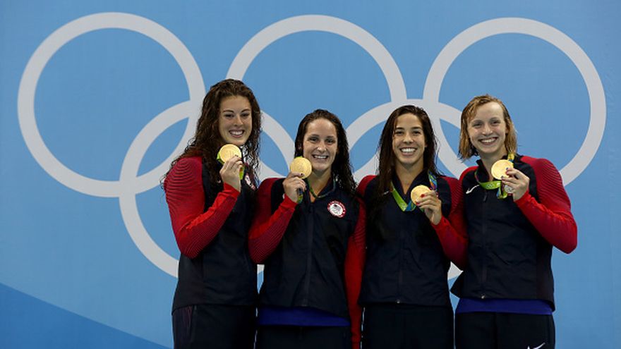 Es el tercer oro para estar prodigio de la natación estadounidense de 19 años, que subió al podio con Allison Schmitt, Leah Smith y Maya Dirado.