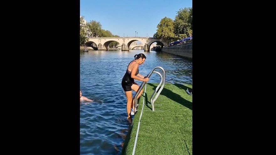 En un video subido en su cuenta de Instagram este martes se ve a la regidora dándose un baño, sonriente, bajo el un cielo soleado sobre la capital francesa y acompañada de decenas de personas en el agua.