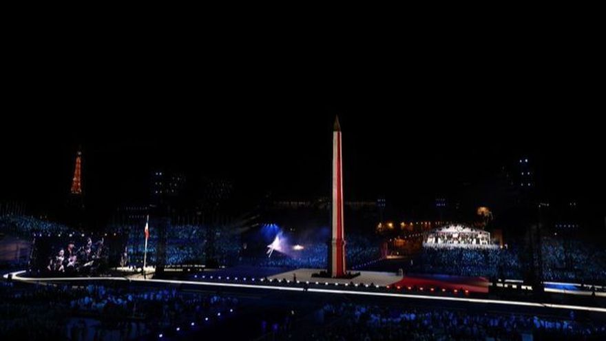 "Bienvenidos al país del amor... y de la revolución", declaró el presidente del Comité Organizador de París-2024, Tony Estanguet, una vez caída la noche en la plaza de la Concordia, donde un escenario central en torno al famoso Obelisco de Luxor acogió el espectáculo 'Paradoxe' (Paradoja).