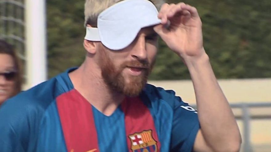 Una vez que quedaron claras las reglas de los partidos, llegó el momento de jugar. Entonces, Messi y sus compañeros tuvieron que vendarse los ojos, para sentir la experiencia de los invidentes.
