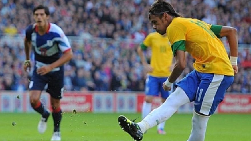 Brasil derrotó este viernes, de la mano de unos sobresalientes Neymar y Óscar, al Reino Unido por 0-2 en el último encuentro de preparación de ambas selecciones antes de que den comienzo el próximo 27 de julio los Juegos Olímpicos de Londres 2012. El técnico brasileño, Mano Menezes, pudo alinear a su once de gala, donde destacaban los delanteros Neymar y Hulk y el media punta Óscar, a un gran nivel esta noche. Ya desde el inicio del encuentro, la "canarinha" se hizo con el control del balón y movió al Reino Unido a su antojo, muy dependiente de los destellos de calidad del veterano Ryan Giggs, de 38 años, único futbolista capaz de hacer jugar a su equipo. El 4-3-3 planteado por Menezes hizo que Brasil desplegara su fútbol ofensivo ante un rival que en los primeros 45 minutos solo pudo defenderse. En el minuto 5, el delantero del Santos Neymar mandó el primer aviso a la defensa británica al plantarse solo delante de la meta defendida por Steele, pero su disparo con el pie izquierdo se marchó alto. Apenas seis minutos después llegó el primer gol brasileño, obra del futbolista del Tottenham Sandro, quien remató a gol una falta lanzada por Neymar desde la banda derecha. La defensa del "Team GB" volvió, una vez más, a dar facilidades a su rival y dejó solo al centrocampista brasileño, que superó al portero británico con un ajustado testarazo. La reacción británica no se hizo esperar y un par de minutos después el defensa Micah Richards remató de cabeza un buen centro de Giggs, detenido muy bien por Rafael. El jugador del Manchester City volvió a ser protagonista en el minuto 33 del partido al cometer un claro penalti sobre el delantero del Oporto Hulk, quien le ganó en carrera tras una buena internada por la derecha y se plantó delante de la meta de Steele. Neymar subió el 0-2 al marcador tras transformar la pena máxima con un tiro raso y ajustado a la derecha del portero, que, pese a la estirada, nada pudo hacer. Las ocasiones brasileñas se sucedieron hasta el descanso, pero el buen hacer de la defensa británica y el mal acierto de los hombres de Menezes impidieron que un tercer gol subiera al electrónico. Sin embargo, y tras realizar cuatro cambios en el intermedio, la selección dirigida por Stuart Pearce saltó al césped del estadio de Riverside, al noreste de Inglaterra, con la intención de remontar la desventaja de dos tantos. El Reino Unido, si bien estuvo mejor plantado y disputó una segunda mitad mucho más seria, apenas tuvo una oportunidad para volver a entrar en el encuentro en los segundos 45 minutos. La sólida defensa brasileña, liderada por el nuevo fichaje del Paris Saint-Germain Thiago Silva, no dio ninguna opción a los delanteros británicos, Bellamy y Sturridge primero, y Sordell y Sinclair más tarde. A falta de seis días para que dé comienzo la competición de fútbol en los Juegos Olímpicos de Londres, Brasil vuelve a presentar su candidatura a la medalla de oro, a la que parte como principal favorita junto a las selecciones de España y Uruguay. El conjunto brasileño está encuadrado en el grupo C junto a las selecciones de Egipto, Bielorrusia y Nueva Zelanda, mientras que el Reino Unido parte como uno de los favoritos del grupo A, en el que también están Senegal, Uruguay y los Emiratos Árabes Unidos.