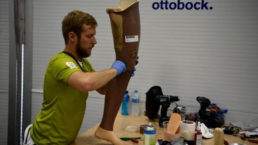 "Nuestro desafío principal es logístico. Debemos asegurarnos de que cada atleta pueda dejar y hacer reparar su equipo rápida, fácilmente y con todo el material necesario", explica Derek Johnson, técnico estadounidense de Ottobock en Rio.
