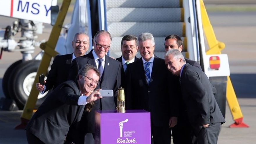 El presidente del Comité de Organización Río-2016, Carlos Arthur Nuzman, fue quien descendió por la escalera del avión portando la llama, que flameaba en una pequeña lámpara.