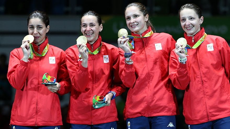 Rumanía, conducida por Simona Pop, Simona Gherman, Ana Maria Popescu y Loredana Dinu, ganó este jueves el título de espada por equipos al derrotar a China, campeona en Londres-2012, por 44 tocados a 38 en la final de Río 2016.