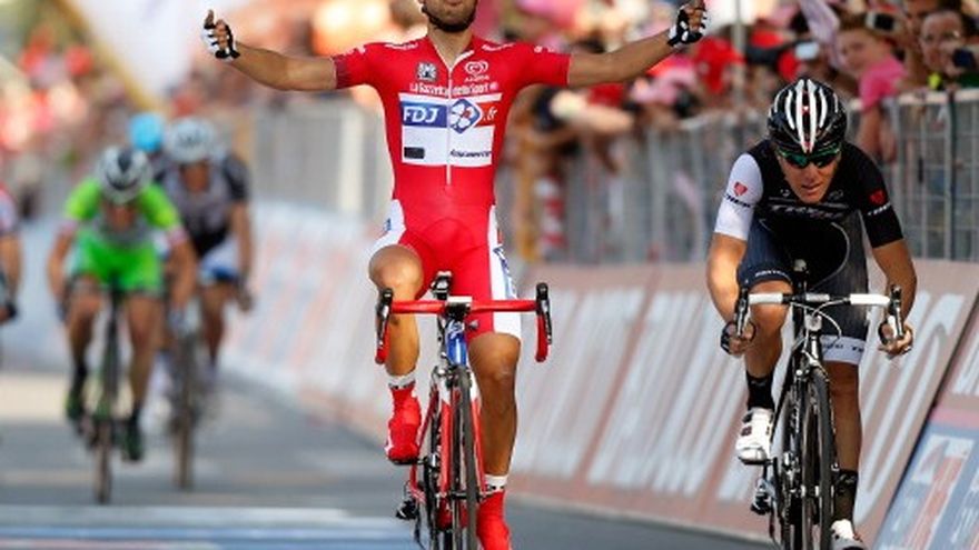 SALSOMAGGIORE TERME, Italia (AP) -El francés Nacer Bouhanni calculó a la perfección el momento para otro sprint y ganó el martes su tercera etapa en el Giro de Italia de este año, mientras que Cadel Evans se mantuvo como líder de la clasificación general seguido por el colombiano Rigoberto Urán tras la décima fracción. Bouhanni tardó poco más de cuatro horas para completar la ruta mayormente plana de 173 kilómetros (108 millas) de Modena a Salsomaggiore Terme. El italiano Giacomo Nizzolo terminó segundo para su cuarto podio de la carrera de este año y el australiano Michael Matthews llegó tercero, ambos con el mismo tiempo de Bouhanni. El australiano Evans lidera la clasificación general y Urán se ubica a 57 segundos. El polaco Rafal Majka es tercero a 1:10.