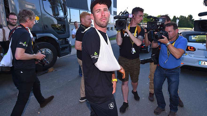 Cavendish, el ciclista en activo con más victorias en el Tour (30) sufre de una fractura en la clavícula derecha, informó su equipo, el Dimension Data.