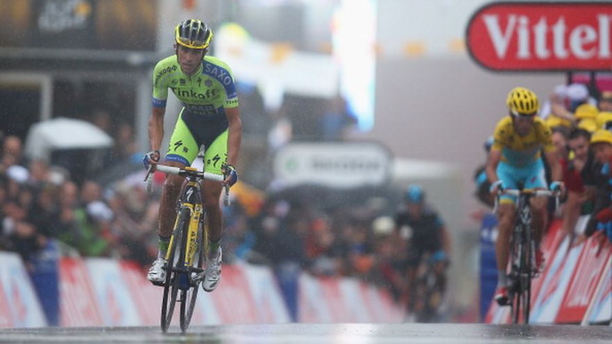 BORJA, España (AP) -- Alberto Contador pasó al frente el martes en la Vuelta a España después que el líder Nairo Quintana se cayó y al parecer perdió las posibilidades de ganar esta competencia después de haberse impuesto en el Giro a Italia. Tony Martin ganó la décima etapa, una contrarreloj individual, y Contador quedó primero en las posiciones generales. Quintana perdió el control en una curva descendente, donde embistió una valla de contención y salió volando para caer en el suelo. Después que fue atendido por su equipo Movistar, el colombiano logró volver a montar su bicicleta y terminó la etapa a más de tres minutos de Contador. Martin, tres veces campeón mundial de contrarreloj y corredor de Omega Pharma-Quickstep, completó en 47 minutos y 2 segundos el tramo de 36,7 kilómetros (22,8 millas) entre el monasterio de Santa María de Veruela y la ciudad de Borja. El colombiano Rigoberto Urán, también de Omega, fue el segundo más veloz de la etapa a 15 segundos, seguido de Fabián Cancellara a 18 y Contador a 39. Contador aventaja por 27 segundos a Alejandro Valverde en la clasificación general. Tercero está Urán a 59 y cuarto otro colombiano, Winner Anacona, de Lampre Mérida, a 1:12. Chris Froome tuvo una jornada decepcionante ya que el exganador del Tour de Francia quedó a 1:18 de Contador. Joaquim Rodríguez, conocido como un escalador que no las tiene todas consigo en las contrarreloj, anduvo mejor de lo esperado y quedó a 1:37. Quintana pasó de aventajar a Contador por tres segundos a quedar a 3:25 detrás. El colombiano era el favorito. Ahora su accidente parece entregar todas las posibilidades a Contador. Después de una fractura en la canilla derecha le obligó a retirarse del Tour de Francia, Contador llegó a la Vuelta como uno de los últimos inscritos y supuestamente sin aspiraciones de título. Pero el cinco veces ganador de grandes carreras fue capaz de atacar a sus rivales en la novena etapa montañosa y ahora, después de un día de descanso, ha pasado al frente. Además Quintana probablemente ha quedado fuera de toda posibilidad de alcanzarlo y Froome aparentemente no está plenamente en forma después que tuvo que retirarse del Tour debido a heridas en las manos causadas por caídas. "Nadie podría haber imaginado que yo luciría hoy la casaca amarilla", comentó Contador. "Los primeros siete días fueron realmente duros, pero me esforcé por mantenerme a la par de los demás y quedar en buena posición. Pero es una lástima que Quintana se cayera". El ciclista de Tinkoff-Saxo dijo que su pierna más resentida no le había molestado durante la carrera, pero que a veces la siente mientras duerme. Martin dijo que la victoria en la etapa era una buena preparación para el campeonato mundial de este mes en Ponferrada, España, donde el alemán buscará aumentar su cosecha de tres títulos mundiales. La etapa del miércoles seguirá un tramo de 153 kilómetros (95 millas) que comenzará en Pamplona y concluirá en una cumbre de categoría uno en el Santuario de San Miguel de Aralar. La competencia de 21 etapas concluirá el 14 de septiembre en Santiago de Compostela.