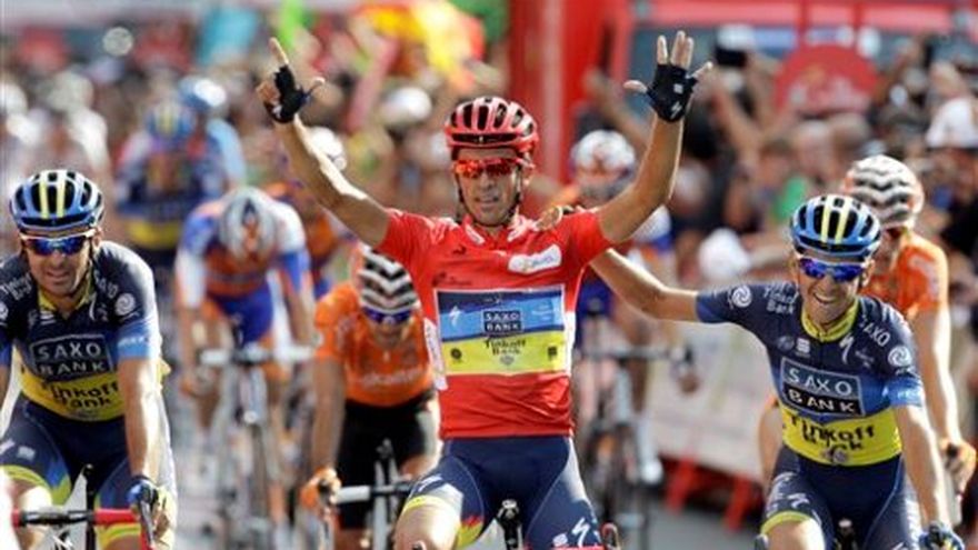 Alberto Contador ganó el domingo su segundo título de la Vuelta a España, con lo que consiguió su quinta victoria en las principales pruebas ciclísticas poco más de un mes después de cumplir su suspensión por dopaje. El ciclista español superó con facilidad la sencilla y en gran medida ceremonial última fracción en Madrid y sus alrededores para imponerse a sus compatriotas Alejandro Valverde y Joaquín Rodríguez en la carrera de 21 etapas. Valverde, el ganador en 2009, terminó 1 minuto y 16 segundos detrás. Rodríguez terminó 1:38 minutos después, tras haber liderado esta 67ma edición del clásico español durante 13 etapas. Contador cruzó la meta el domingo en el puesto 54, detrás del ganador de la etapa John Degenkolb, y celebró mostrando siete dedos para representar también sus triunfos en el Tour de Francia 2010 y el Giro de Italia 2011, títulos de los que fue despojado a causa de su positivo por dopaje. El español de 29 años también ganó la Vuelta en 2008, así como el Tour en 2007 y 2009 y el Giro en 2008. Dio positivo por clembuterol durante el Tour de 2010, cuando se encaminaba a la victoria. Siguió compitiendo mientras se desarrollaba el proceso de apelación, y alegó que el resultado se debía a que había comido carne contaminada. Perdió el caso en febrero y sus resultados desde 2010 fueron eliminados, incluyendo los títulos del Tour 2010 y el Giro 2011. Tras perderse el Tour de este año mientras cumplía su sanción, Contador exhibió en su regreso a las principales competencias todas las virtudes que lo llevaron a ser calificado como el mejor ciclista de su generación. Alcanzó el liderato de la carrera en la 17ma etapa. Contador es uno de los cinco ciclistas que han Ganado al menos un Tour, un Giro y una Vuelta. Bernard Hinault, Eddy Merckx, Jacques Anquetil y Felice Gimondi son los únicos otros ciclistas que han ganado las tres principales competiciones.
