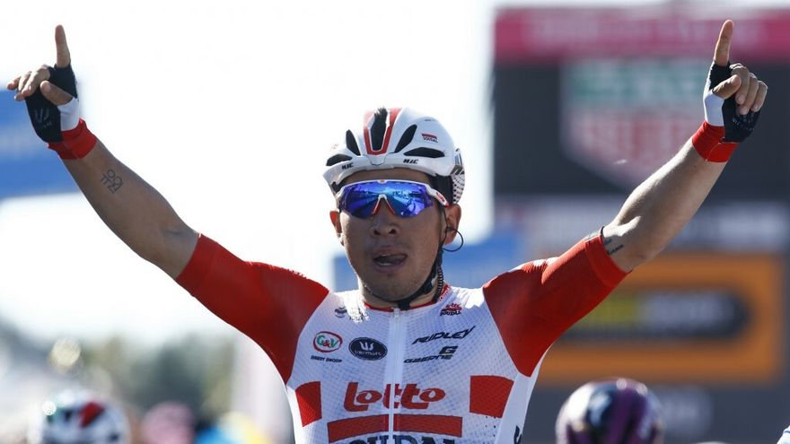 En una recta final con ligera pendiente y, sobre todo, con un fuerte viento de cara, el pequeño velocista del Lotto (1,65 m) impuso su punta de velocidad, por delante del francés Arnaud Démare (Groupama-FDJ), del alemán Pascal Ackermann y del italiano Elia Viviani.