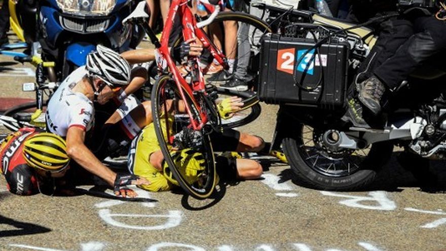 "El Ventoux está lleno de sorpresas. Antes del último kilómetro una moto ha frenado de manera repentina y nosotros (Richie Porte, Mollema y Froome) llegamos por detrás. Otra moto me ha roto la bicicleta", señaló Froome.