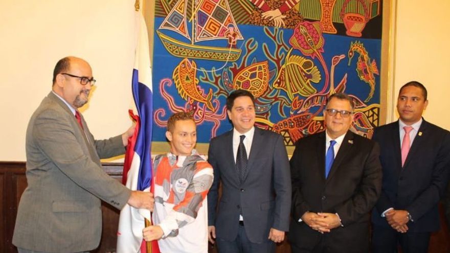 El ministro Sánchez entregó el emblema patrio a Cención, en acto celebrado este jueves en el Salón Paz de la Presidencia de la República, y que contó con la presencia del Presidente del Comité Olímpico de Panamá (COP), Camilo Amado, Mario Pérez Director del Instituto Panameño de Deportes (PANDEPORTES), miembros de Federaciones Deportivas Nacionales y atletas que intervendrán en la competencia más relevante de la región.