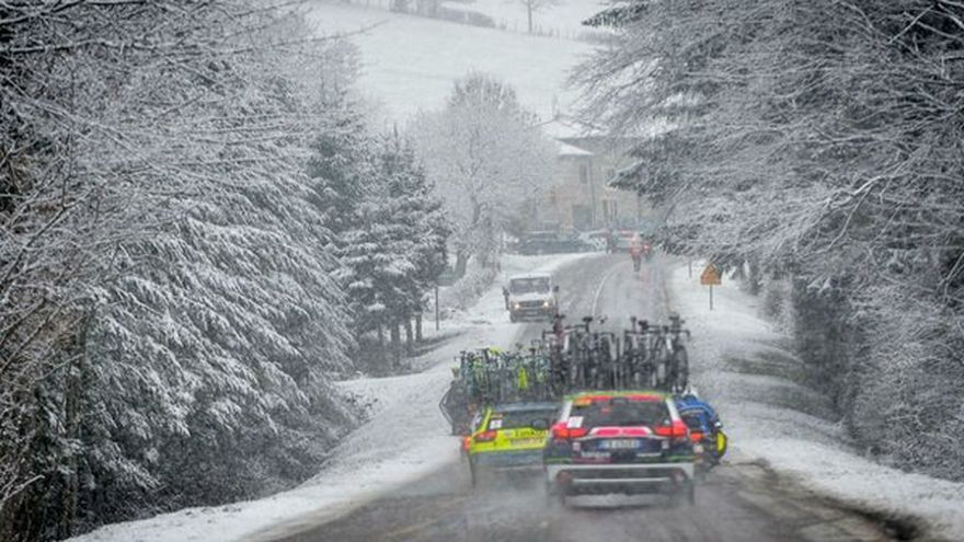 La tercera etapa de la París-Niza, un recorrido entre Cusset (Allier) y Mont Brouilly (Rhone), fue interrumpida y anulada este miércoles por la nieve, anunció la organización de la prueba.