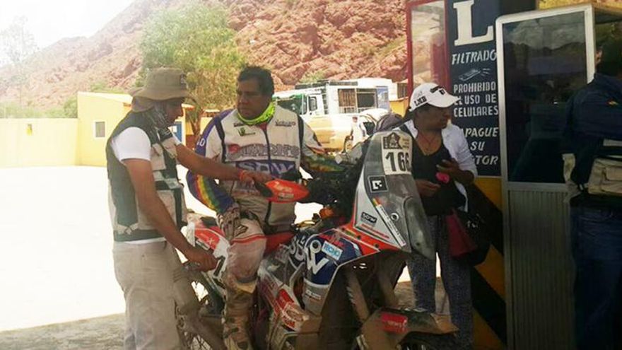 Ya en el poblado boliviano de Uyuni, al culminar la séptima etapa, el piloto de motos recibió la colaboración de una humilde vendedora de jugos hervidos, María Alejandra Huanca, quien pagó con 62 bolivianos, menos de 10 dólares, su consumo de gasolina.