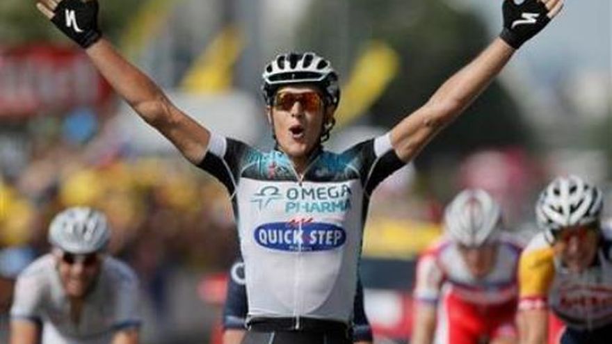El italiano Matteo Trentin se impuso el sábado en la decimocuarta etapa del Tour de Francia en un embalaje de ejecución perfecta. El líder en la general, Chris Froome, y los otros principales candidatos al título se retrasaron varios minutos respecto de Trentin. Froome mantuvo su delantera al llegar en el pelotón principal junto con sus rivales. "Fue realmente un gran embalaje", se entusiasmó Trentin. Julien Simon intentó ser el primer francés en ganar una etapa este año pero fue alcanzado por varios corredores faltando un kilómetro. Al comienzo del embalaje Trentin, de 23 años, estaba entre los últimos de los ciclistas que atacaron pero superó justo en el final al suizo Michael Albasini por media rueda. Tercero fue el estadounidense Andrew Talansky. Fueron seguidos a 7 minutos 17 segundos por el grueso de los competidores, con los equipos Sky, de Froome, y Saxo-Tinkoff, de Alberto Contador, formando escudo en torno de sus corredores astros. Froome, el favorito del Tour, perdió más de un minuto ante Contador, campeón del Tour en 2007 y 2009 que fue despojado de su título al año siguiente por dopaje, y el holandés Bauke Mollema en el incidente del viernes. Esta vez evitó los riesgos en el tramo de 191 kilómetros (119 millas) entre Saint-Pourcain-sur-Sioule y Lyon. La línea de llegada fue frente al Stade Gerland, donde juega el Lyon, siete veces campeón del fútbol francés. En la general, Froome totaliza 55 horas, 22 minutos y 58 segundos. Le siguen Bauke Mollema, de Holanda (Belkin Pro Cycling) a 2:28 y Contador a 2:45. El colombiano Nairo Alexander Quintana, de Movistar, sigue octavo en la general a 5:18. Un grupo de 18 ciclistas se desprendió temprano. Jens Voigt, Jan Bakelants y David Millar, de Garmin-Sharp, corrieron a ritmo furioso para ayudar a su compañero Andrew Talansky, el mejor del equipo en la clasificación general. El grupo en el que estaba Froome, con la casaca amarilla de puntero, estaba a unos cinco minutos atrás cuando los ciclistas de avanzada habían completado la segunda escalada de categoría 2. Fueron ascensos moderados en comparación con lo que aguarda a los corredores en la enorme trepada del domingo de 20,8 kilómetros al Mont Ventoux. Aunque el campeón del Giro de Italia 2004, Damiano Cunego, y el holandés Johnny Hoogerland persiguieron a los del grupo puntero, estos extendieron su gran ventaja y el ritmo demostró ser excesivo para los veteranos Voigt y Millar. Faltando unos 15 kilómetros (9 millas), Simon se desprendió y abrió una ventaja de casi 30 segundos. Froome reservó energías para el domingo, el Día de la Bastilla, fiesta nacional de Francia. Sus compañeros en Sky se han cansado claramente en dos etapas hasta ahora: la segunda de los Pirineos en la novena y la etapa plana del viernes, y necesita de ellos para repeler cualquier ataque de Contador en Ventoux. Después del día de descanso del lunes, Contador tendrá sus miras en las escaladas de la última semana en los Alpes.