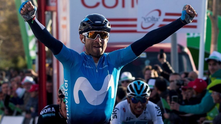El veterano ciclista murciano, de 37 años, puso la guinda con su triunfo al gran trabajo del Movistar, que imprimió un ritmo muy duro en los últimos 50 kilómetros de la etapa, en los que el viento soplaba muy fuerte.
