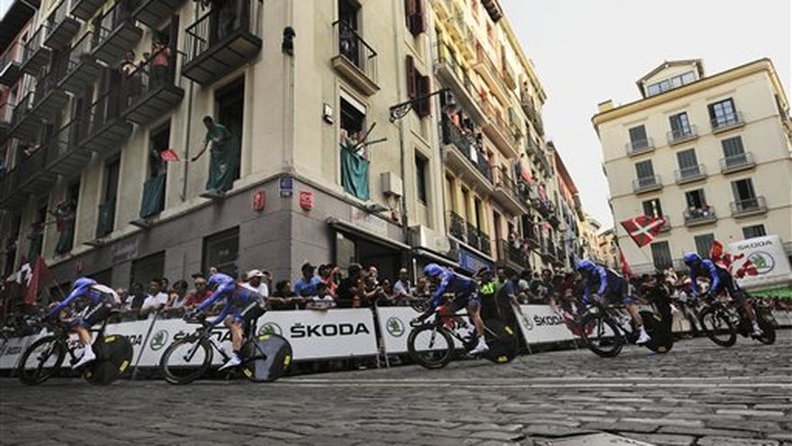 El equipo Movistar ganó el sábado la contrarreloj por equipos que puso en marcha la Vuelta Ciclista a España y el local Jonathan Castroviejo quedó como líder de la clasificación general. La edición 67 de la Vuelta, tercera de las carreras europeas clásicas del verano después del Tour de Francia y del Giro de Italia, arrancó con un tramo de 16,5 kilómetros (10,25 millas) por las estrechas calles adoquinadas de Pamplona. La meta fue el ruedo de toros de la ciudad, siguiendo la ruta de la famosa suelta de toros de Pamplona. El tiempo de Movistar fue 18 minutos y 51 segundos. Rabobank y Omega Pharma Quick Step quedaron segundo y tercero, a 10 segundos de los ganadores. Team Sky quedó quinto con Christopher Froome, mientras que el SaxoBank de Alberto Contador figuró séptimo. La Vuelta marca el regreso de Contador tras cumplir una sanción de dos años por dopaje tras dar positivo por el estimulante clenbuterol durante el Tour de Francia de 2010. "He llegado muy en forma a la Vuelta, tengo que aprovechar este estado de forma. Ha merecido la pena el ir a los Juegos Olímpicos", dijo Castroviejo, citado por la agencia Europa Press. Castroviejo quedó noveno en la contrarreloj individual en los Juegos de Londres. "No esperábamos ser los ganadores de la etapa, ya que la veíamos un tanto dificultosa por el trazado, pero para el equipo era muy importante esta crono y hemos podido cumplir el sueño de todos, no habíamos hablado quién entraría el primero para ponerse líder", dijo. Contador se mostró satisfecho tras la primera etapa: "Hemos hecho un buen tiempo en la contrarreloj. El equipo lo ha dado todo, estábamos muy concienciados y se ha visto. No está mal para ser el primer día, estoy contento con el resultado pero todavía queda mucha Vuelta". La etapa del domingo tendrá un recorrido de 181 kilómetros (112 millas entre Pamplona y Viana. La Vuelta abarca un trayecto de 3.360 kilómetros (2.050 millas) en 21 etapas, con dos días de descanso. La carrera terminará el 9 de septiembre en Madrid. Es el segundo año consecutivo que la Vuelta pasará por la región vasca después de una ausencia de 33 años debido a inestabilidad política.