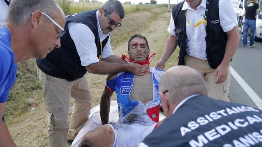 El ciclista de 33 años y miembro del equipo FDJ liderado por Thibaut Pinot, fue el causante involuntario de la caída masiva que acabó con el abandono de cuatro corredores, entre ellos el líder Cancellara, y que obligó a la organización a neutralizar la carrera por falta de ambulancias.