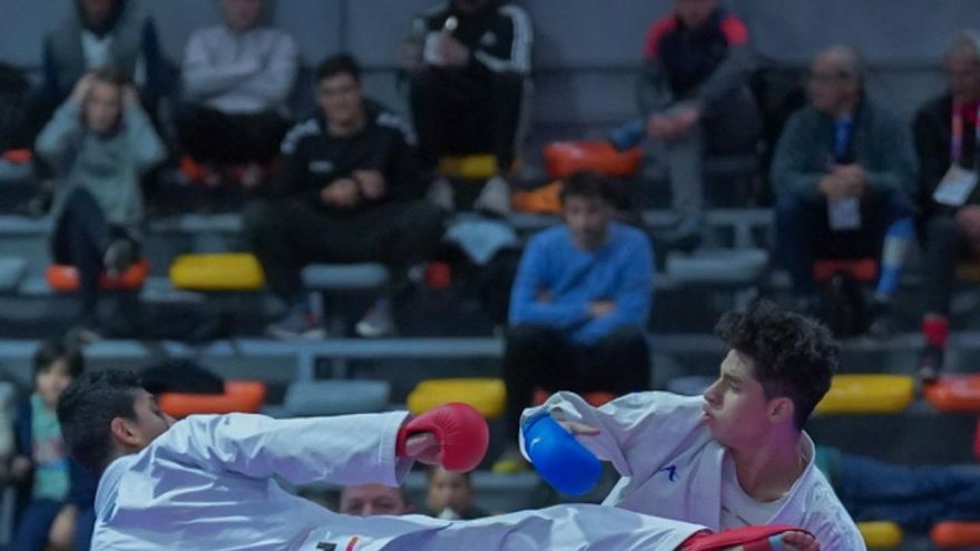 El atleta panameño Gabriel Villar en los -68kg del karate (kumite) disputó cuatro combates en la ronda de grupos en el Clúster de La Rural en los III Juegos Suramericanos de la Juventud, Rosario 2022.