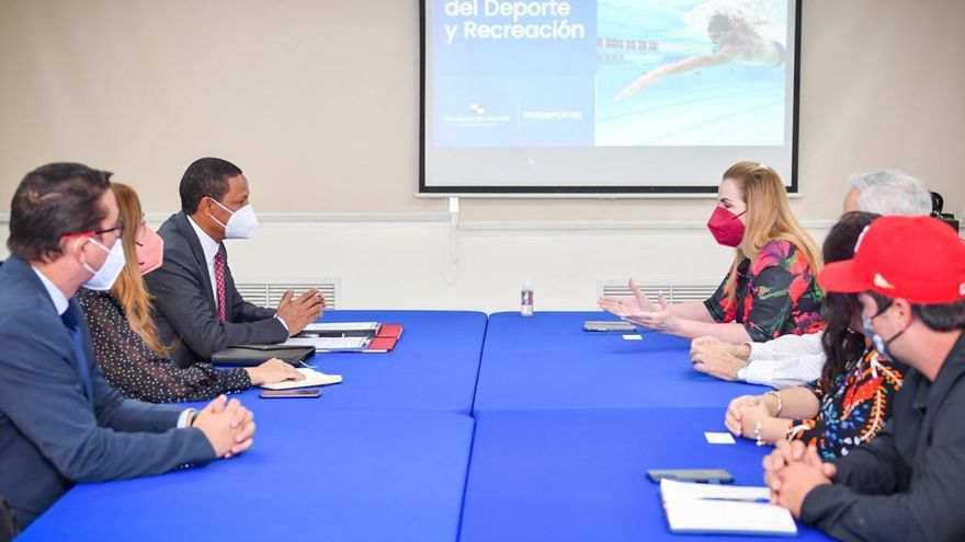 Héctor Brands, director general de Pandeportes presentó este lunes a la Asociación Panameña de Empresas (APEDE) el borrador del Proyecto de Ley General del Deporte y la Recreación, Elisa Suárez como presidenta de APEDE recibió el documento.