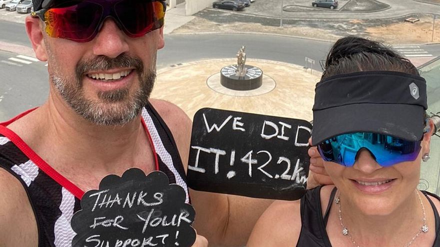 Una pareja sudafricana que vive en Dubái corrió un maratón (42 kilómetros) en su balcón de 20 metros de largo y lo retransmitió a través de internet, el sábado con el objetivo de levantar la moral de la gente en medio de la pandemia de coronavirus.
