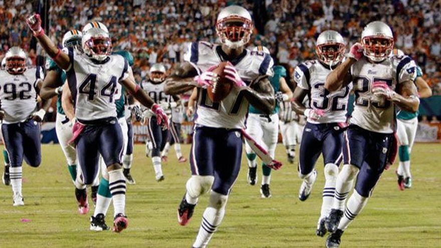 Patrick Chung bloqueó dos patadas y regresó una intercepción para touchdown al tiempo que los equipos especiales de los Patriots de Nueva Inglaterra anotaron dos veces para derrotar el lunes a los Dolphins de Miami por 41-14. Tom Brady lanzó para ganancia de sólo 153 yardas, y Randy Moss no tuvo ninguna recepción por primera vez desde el 2006, pero el equipo más ofensivo de la NFL logró su mayor cifra de puntos en la campaña. Los Patriots perdían por 7-6 al llegar a la pausa del medio tiempo, pero cuando Brandon Tate regresó 103 yardas para anotación la patada de salida de la segunda mitad, se encendió el ataque. Chung bloqueó una patada de despeje para preparar una anotación, después bloqueó un gol de campo que Kyle Arrington regresó 35 yardas para anotación. Chung regresó una intercepción 51 yardas para el último touchdown de Nueva Inglaterra.