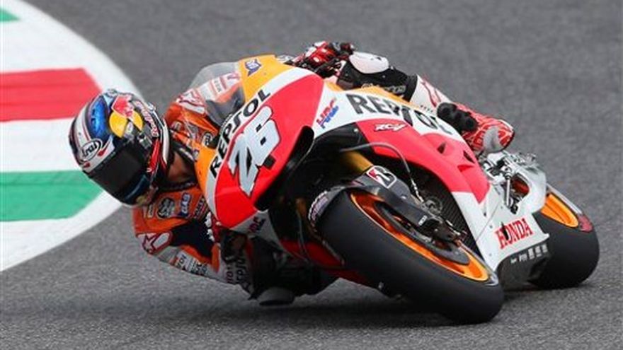 Dani Pedrosa, líder del campeonato mundial de Moto GP, logró el sábado la pole del Gran Premio de Italia. El piloto español del equipo Repsol Honda cronometró 1 minuto, 47.157 segundos, un nuevo récord para el circuito de Mugello. Su compatriota Jorge Lorenzo, del equipo Yamaha Factory, se clasificó segundo, a 0.069 segundos. El italiano Andrea Dovizioso largará tercero en su Ducati. Marc Márquez, un español que marcha segundo en la clasificación, partirá sexto en la parrilla tras salir ileso de un feo choque en una práctica del viernes. Valentino Rossi se clasificó séptimo para la carrera del domingo.