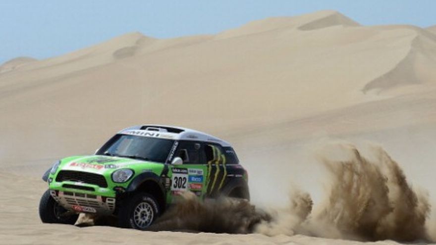 La leyenda francesa Stéphane Peterhansel, diez veces campeón y actual poseedor del título, se adjudicó la segunda etapa del Rally Dakar Sudamérica en el durísimo desierto peruano de Pisco, frente al Pacífico. El piloto español Joan Barreda ganó en la categoría motos. Peterhansel, al timón de su Mini, marcó 2 horas, 35 minutos y 38 segundos en 242 kilómetros (150,4 millas) e impuso su experiencia en zonas salpicadas de dunas, caídas, piedras y cenizas volcánicas, conocidas como fesh-fesh, que impiden ver. "Hemos firmado una buena etapa gracias a la navegación", dijo el francés quien agradeció el trabajo realizado por su copiloto Jean-Paul Cottret. Detrás del líder llegó el sudafricano Giniel de Villiers, campeón en 2009, a 2 minutos y 35 segundos de diferencia. Tercero se ubicó el francés Ronan Chabot. El español Carlos Sainz, ganador el sábado, llegó octavo por fallas, según dijo, de su GPS. En la competencia de motocicletas, la intuición de Barreda le permitió marcar un tiempo de 2 horas, 42 minutos y 31 segundos con su Husqvarna. El también español Juan Pedrero llegó segundo con 3 minutos y 16 segundos después. "Me he perdido al principio de la etapa, pero no he sido el único. A unos cuantos nos ha costado ubicarnos... Por suerte he conseguido dar con el rumbo correcto en seguida y a partir de entonces me ha ido todo bien", dijo Barreda. El francés Cyril Despres, cuatro veces ganador del Dakar y actual poseedor del título, llegó en 12do lugar a 10 minutos y 10 segundos de Barreda. "Me gustaría saber quién no se ha perdido hoy", dijo el francés. A su vez, el chileno Francisco López, ganador de la primera etapa del sábado, llegó en el puesto 29no con 18 minutos y 14 segundos de diferencia del líder. López comentó que el mayor problema fueron las "dunas blandas...sabemos que hay dos etapas más en Perú que no serán nada fáciles". En la categoría de cuatrimotos, el argentino Marcos Patronelli, subcampeón en 2012, llegó primero sobre su Yamaha con 3 horas, 2 minutos y 40 segundos. Lo escoltó Sebastián Husseini, de Emiratos Arabes Unidos, a 1 minuto y 6 segundo. El peruano Ignacio Flores, ganador del primer tramo del sábado, entró quinto. Patronelli, quien el lunes abrirá el camino en la tercera etapa, relató que la segunda etapa fue "rápida, bonita, pero también peligrosa". El holandés Gerard de Rooy confirmó, igual que el sábado, su destreza en la competencia de camiones al arribar primero en 3 horas y 59 segundos. El checo Ales Loprais apareció 1 minuto y 1 segundo después, mientras que el italiano Miki Biasion se hizo del tercer lugar. Relegado al séptimo lugar quedó el holandés Hans Stacey que el sábado entró segundo. De Rooy, poseedor del título 2012, relató que perdió casi 10 minutos llenos de tensión buscando el mejor lugar para atravesar las dunas peruanas en su Iveco. Pero al final "hemos podido atacar (acelerar) en los últimos kilómetros", dijo. Las dunas de Pisco, a 205 kilómetros (127,4 millas) de Lima, se convirtieron en la pesadilla de los pilotos en especial la ubicada en el kilómetro 75, lo que obligó a varios competidores a realizar un rodeo y perder valiosos minutos. "Las dunas son algo muy representativo de aquí, porque no lo tenemos en Centroamérica", dijo el motociclista Jorge Aguilar, el único representante de El Salvador. La competencia del domingo tuvo un enlace de 85 kilómetros (52,82 millas) y un etapa contrarreloj de 242 kilómetros (150,4 millas). El argentino Pablo Busin abandonó la competencia luego que su moto Honda se incendió en el kilómetro 40 de la especial sin que el piloto sufriera daños, informó la organizadora del evento. La tercera etapa se disputará el lunes entre las ciudades de Pisco y Nazca con un enlace de 100 kilómetros (62,13 millas) y una especial de 243 kilómetros (150,9 millas) donde, otra vez las dunas y las cenizas volcánicas, serán los desafíos de los pilotos. El Rally 2013 finalizará el 20 de enero en la capital chilena tras recorrer 8.574 kilómetros (5.327,88 millas) y pasar por Argentina. Esta competencia de aventura, considerada la más difícil del mundo en su tipo, se realizó entre Europa y África hasta que la carrera de 2008 se canceló por temor a ataques terroristas. Luego se mudó a Sudamérica.
