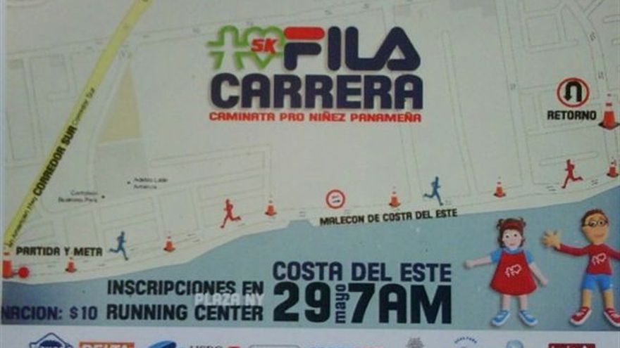 El próximo domingo 29 de mayo en Costa del Este, se realizará la Carrera/Caminata 5km Fila Pro Niñez Panameña para apoyar a la Asociación Pro Niñez Panameña. Fila, consciente de su responsabilidad social se une a esta noble causa, con otros patrocinadores y junto con el Club Corredores del Istmo que este año apoyarán con un 100% de la logística del evento convirtiéndola en una carrera válida para el Ranking 2011. Esta no es solo una actividad deportiva, sino que con su donación la Asociación Pro Niñez Panameña podrá seguir brindando ayuda integral a la niñez más necesitada de Panamá con alimentación, construcción de escuelas, educación y demás, todo esto para mejorar la calidad de vida de los niños panameños. Son 500 inscripciones y estas serán en el Running Center en Sportline America de Plaza New York desde el 11 de mayo, están todos invitados a este evento que es una competición abierta tanto para corredores como para toda la familia quienes podrán participar en las diferentes categorías de la competencia. Habrá premios en cada categoría, además de hidratación durante el evento y vigilancia en todo el recorrido. La carrera/caminata será específicamente en El Malecón en Costa del Este, desde las 7:00 a.m., abierta para niños y adultos de todas las edades, solo deben comprar el kit de Inscripción de la caminata y el total de lo recaudado será donado para la Asociación Pro Niñez Panameña.