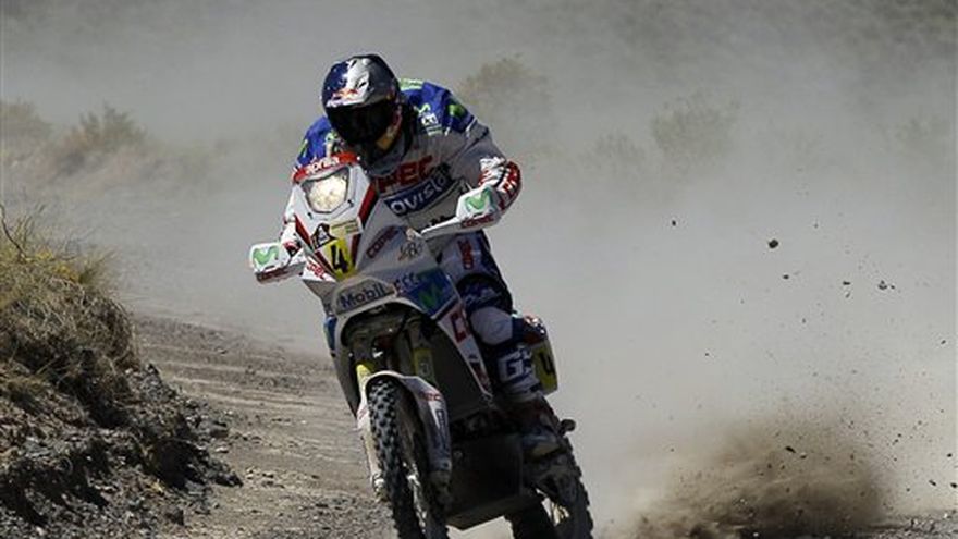 El español Marc Coma ganó el lunes la segunda etapa y desplazó al chileno Francisco López del liderato en la clasificación general entre las motos, mientras que el qatari Nasser Al-Attiyah se impuso en la categoría autos en el Rally Dakar que se corre por suelo sudamericano. Coma y Al-Attiyah, que en la general figura sexto, son los actuales campeones en sus respectivas categorías. Coma (KTM) accedió a la primera posición tras esa etapa, aventajando en ese orden al francés Cyril Despres (KTM), el español Joan Barreda (Husqvarna) y a "Chaleco" López, (Aprilia). El triunfo de Coma fue un día después de la muerte del motociclista argentino Jorge Martínez Boero, quien falleció al caerse de su moto en la etapa inaugural entre Mar del Plata y Santa Rosa, capital de la provincia de La Pampa. El Dakar, considerado como uno de los eventos más peligrosos en el deporte motor, se ha cobrado tres vidas en esta edición ya sea en forma directa o indirecta. El mismo día de la muerte de Martínez Boero, el piloto de un avión ultraliviano y su hijo fallecieron cuando estaban siguiendo la carrera desde el aire y el avión cayó. Funcionarios de rescate identificaron a los muertos como Luis Marcelo Soldavini, de 37 años, y su hijo Tomás de 11. Esta nueva etapa también se vio empañada por la caída de su moto del chileno Manuel Jammet, quien "se ha fracturado varios dedos del pie y ha decidido abandonar", dijo un parte de prensa de la organización. Jammet, quien había finalizado en el puesto 65 en la inauguración de la prueba, se cayó de su moto Husquarna después del kilómetro 206. Coma cruzó la meta con un tiempo de 3 horas, 7 minutos y 21 segundos; Despres cronometró 03.08.39; Barreda 03.09.54 y López llegó a dos minutos y 44 segundos del líder. Esos tiempos fueron sobre un especial de 295 kilómetros cronometrados, mientras que los otros 487 fueron de enlace para un total de 782 km del recorrido entre Santa Rosa y la ciudad mendocina de San Rafael. Coma lidera las posiciones generales con 03.40.12, lo que representa dos minutos y medio menos que López. Despres marcha tercero; el polaco Jakub Przygonski (KTM) cuarto y Barreda quinto. "He corrido a la cabeza hasta el kilómetro 240, con Marc detrás. Luego, al llegar a las dunas, me ha adelantado", dijo López, según el sitio oficial del Dakar. "Y la verdad es que me ha costado seguirlo porque he tenido algunos problemas con mi antena GPS y también me sentía bastante cansado". Al-Attiyah (Hummer) ganó la etapa al cronometrar 2 horas, 47 minutos y 18 segundos para aventajar al francés Stephane Peterhansel (Mini), que fue segundo con 2.48.12. y trepó hasta la primera posición en la clasificación general. El estadounidense Robby Gordon (Hummer) fue tercero. Peterhansel, ganador de seis ediciones en autos y tres en motos, lidera la clasificación general con 2 minutos y 28 segundos de ventaja sobre Gordon, mientras que Al-Attiyah, que partió en el puesto 38, marcha sexto a 8.46 del puntero. El uruguayo Sergio La Fuente volvió a ganar una etapa en cuadriciclos y se consolidó como líder en la tabla general. La tercera etapa se disputará el martes entre San Rafael y San Juan, sobre un total de 499 kilómetros de los cuales 291 serán especiales, es decir que son los que servirán para el registro de los tiempos. El Dakar se corre en Sudamérica en Sudamérica desde 2009 debido a la constante preocupación por la posibilidad de atentados terroristas en Africa. Las tres primeras competencias tuvieron a Argentina y Chile como países anfitriones y este año se sumó Perú.