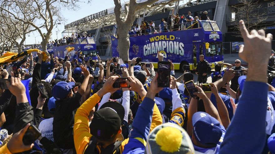 Los Rams de Los Ángeles celebraron este miércoles su triunfo en el Super Bowl de la NFL en medio de una tormenta de confeti azul y dorado durante un desfile ante miles de fanáticos que los vitoreaban.