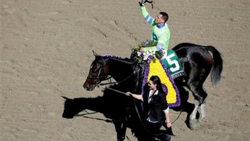 "Ria Antonia" fue declarada ganadora de la carrera para potrancas dosañeras con un premio de dos millones de dólares, gracias a que "She"s a Tiger" fue descalificada el sábado en la carrera inicial de la Copa de Criadores. La potranca "Secret Compass" fue sacrificada tras romperse una pata en la carrera. Cuando iba en tercer sitio, las patas delanteras de "Secret Compass" se quebraron, lo que provocó una fuerte caída del jinete puertorriqueño John Velázquez. La potranca entrenada por Bob Baffert fue sacrificada debido a una fractura, informó el veterinario de guardia Wayne McIlwraith. "Es el peor tipo de lesión que podemos encontrar, desafortunadamente", dijo. Velázquez fue trasladado al hospital pero no se informó inmediatamente de su condición. Estaba contemplado para correr en las nueve carreras de la Copa de Criadores del sábado. Cabalgada por Javier Castellano, Ria Antonia finalizó en segundo lugar en la carrera de 11/16avos de milla en Santa Anita. Pero después de una investigación la yegua de dos años fue colocada en primero. Los jueces dijeron que "She"s a Tiger" y Gary Stevens empujaron a Ria Antonia hacia el final de la carrera y la hicieron reducir su velocidad. Fue la primera ocasión en que un ganador es descalificado desde la primera carrera para caballos de dos años, en 1984, que ganó "Fran"s Valentine" antes de ser relegada al décimo sitio. Con pronósticos de 32-1, "Ria Antoni"a pagó 66,60, 29.80 y 17.40. El tiempo del ganador fue de 1:43.02 y el margen ganador fue de una nariz. "She"s a Tiger" pagó 6,40 y 4,80. Rosalind pagó 6.80 a quien apostó que terminaría en cualquiera de los tres primeros lugares. En esa carrera, "Sweet Reason" y "Artemis Agrotera", montadas por los jinetes panameños Alexis Solís y José Lezcano, terminaron en la cuarta y quinta posición, respectivamente.