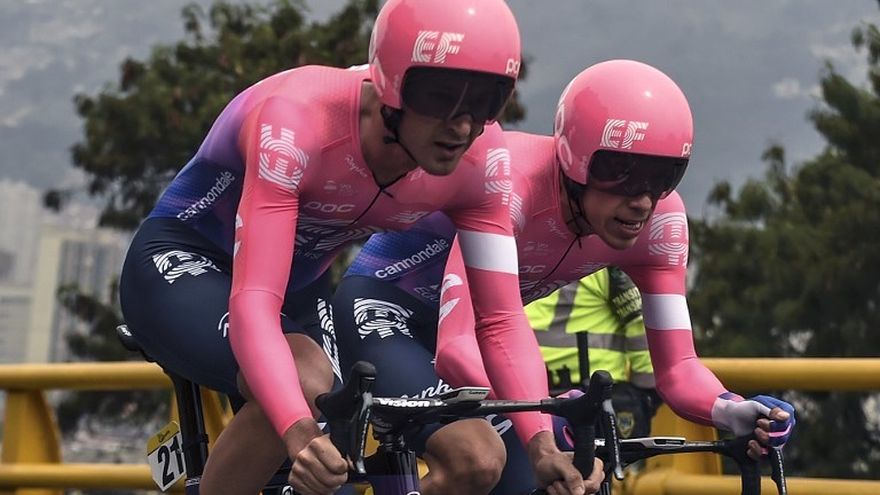 El equipo del pedalista cafetero, la formación estadounidense EF-Education First, ganó la contrarreloj por equipos de 14 kilómetros disputada en Medellín (noroeste).