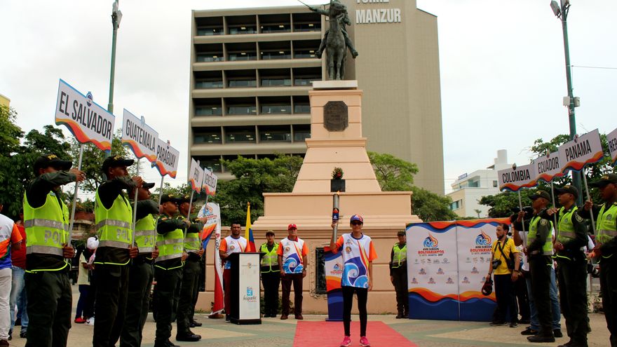 La llama que iluminará desde el próximo sábado los XVIII Juegos Bolivarianos que acogerá Santa Marta pasó este miércoles por la caribeña Barranquilla, donde se le rindió un tributo al Libertador que da nombre al encuentro deportivo.