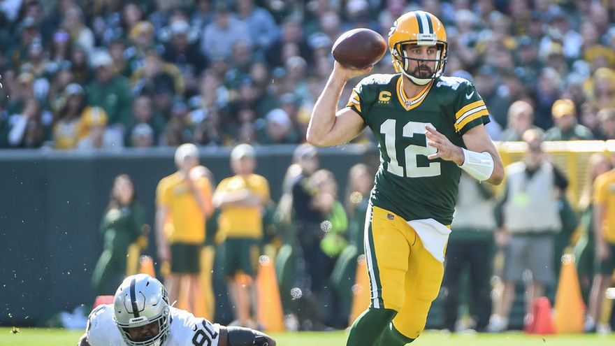 El mariscal de campo Aaron Rodgers lanzó para 429 yardas y cinco touchdowns y corrió para otro, llevando a los Packers de Green Bay a una victoria por 42-24 sobre los Raiders de Oakland.