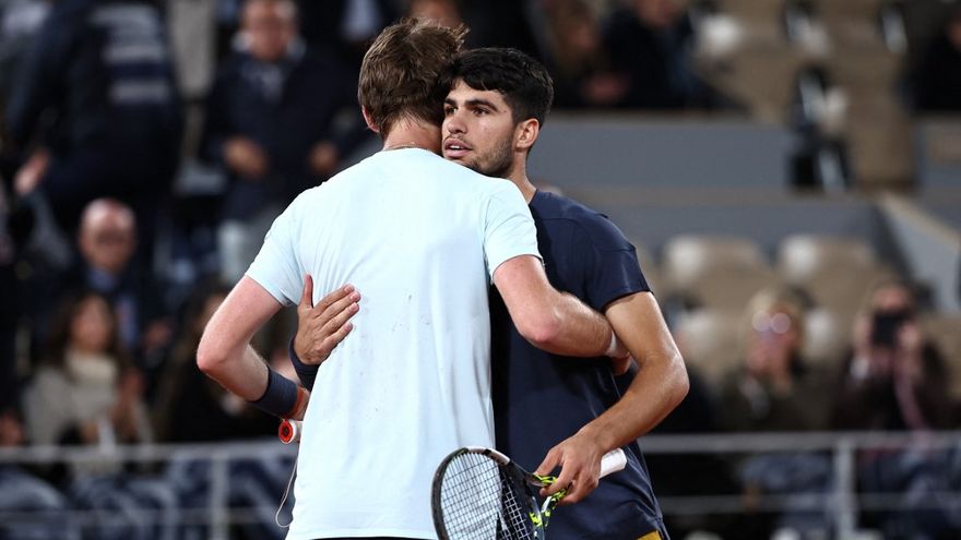 El partido empezó con un 'break' para cada uno de los dos contrincantes, que se mantuvieron en igualdad hasta el noveno juego, en el que Alcaraz rompió de nuevo el servicio de su rival para cerrar el set con su saque.