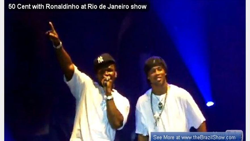 Ronaldinho no se perdió la oportunidad de subirse a la tarima en un concierto de 50 Cent en Río de Janeiro. El futbolista fue una de varias luminarias brasileñas que acudieron al concierto del rapero y fue invitado al escenario, lo que provocó una fuerte ovación de los espectadores. 50 Cent coreó "Olé, Olé, Olé ..." antes de presentar a Ronaldinho y estrecharle la mano. Ronaldinho saludó al público y se puso a bailar con el rapero, mostrando algunos peculiares movimientos, de acuerdo con las imágenes transmitidas por televisión. El jugador del Milan se encuentra de vacaciones en Brasil. 50 Cent ha realizado varias presentaciones en Brasil como parte de su gira "Invitation".