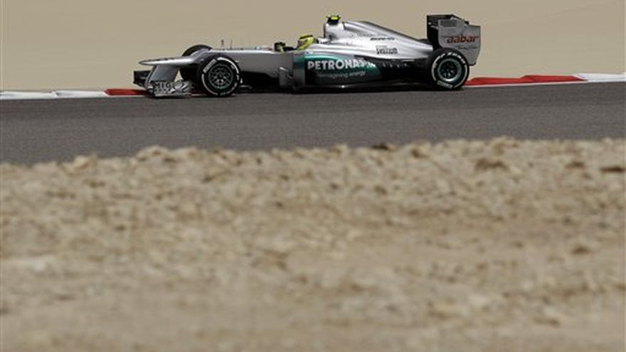 Nico Rosberg parece el piloto a vencer en la sesiones de clasificación después de que registrara el sábado el tiempo más veloz en la última práctica con vistas al Gran Premio de Bahréin. Rosberg, que conquistó la semana pasada el Gran Premio de China en su primera victoria de Fórmula Uno, cronometró con su mercedes un minuto 33,254 segundos, en la pista del Circuito Internacional de Bahréin de 5,4 kilómetros (3,4 millas) Este tiempo superó en 0,147 segundos al del dos veces campeón mundial, Sebastian Vettel, y en 0,409 al del compañero de éste último en el equipo Red Bull, Mark Webber. Lewis Hamilton, de McLaren, el más veloz en la primera práctica, tuvo que conformarse con el cuarto mejor tiempo. Persisten los problemas con Ferrari, dibido a que Fernando Alonso terminó décimo y Felipe Massa, décimo sexto. La sesión se efectuó bajo una estricta seguridad debido a la oleada de protestas antigubernamentales, a veces violentas, de los últimos días en Bahréin.