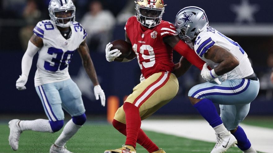 El touchdown de Elijah Mitchell en el primer cuarto y los tres goles de campo del pateador Robbie Gould, dos desde más de 50 yardas, ayudaron a San Francisco a tomar una ventaja de 16-7 en el medio tiempo, en el que Dallas contó también con TD de Amari Cooper, la única anotación del conjunto texano en ese tramo.