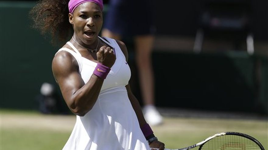El juego de Serena Williams no depende exclusivamente de su prodigioso saque. Sus demoledores golpes intimidan. Su notable velocidad y capacidad para anticiparse a sus rivales le permiten cubrir cada rincón de la cancha. Pero cuando ese saque martillea en el blanco, pues ya es una cosa fuera de serie, tal vez el mejor en la historia del tenis femenino. Con un récord de 24 de aces para el torneo, Williams avanzó el jueves por séptima ocasión a la final de Wimbledon con su triunfo 6-3, 7-6 (3) sobre la bielorrusa y segunda preclasificada Victora Azarenka, y ahora enfrentará a la polaca Agnieszka Radwanska en busca de su 14to título de Grand Slam. Como era de esperarse, Williams ganó el último punto de su partido con un ace. "¿Acaso no es una maravilla?", dijo el padre de Williams, Richard, tras admirar a su hija ganar en la Cancha Central. "¿Se dieron cuenta que le estaba pegando con todo?". El sábado, la estadounidense de 30 años intentará convertirse en la primera mujer con esa edad que gana un Slam desde que Martina Navratilova lo hizo a sus 33 años en el Wimbledon de 1990. "Mientras más vieja, mejor saco", dijo Williams. "No me explicó el por qué puedo servir así de bien. La verdad no tengo idea. No es que me la pase entrenando en casa como loca pegándole a una cubeta. Tal vez es algo natural". Su próxima rival será Radwanska, la tercera preclasificada que despachó 6-3, 6-4 a la alemana Angelique Kerber en la otra semifinal. Con 23 años, Radwanska jugará su primera final en un Slam, "Ambas estábamos un poco nerviosas al principio", señaló Radwanska. "Por supuesto, estas son las semifinales, así que quieres hacer lo mejor posible, pero a veces haces demasiado, y te tiemblan un poco las manos". El récord anterior de 23 aces también era de Williams, que lo impuso en su triunfo sobre Zheng Jie en la tercera ronda del torneo de este año. "He estado trabajando muy duro, y realmente quería esto", comentó Williams, cuatro veces campeona de Wimbledon que fue eliminada en la primera ronda del Abierto de Francia a fines de mayo. "Me puse un poco nerviosa en el segundo set, no me podía relajar. Estaba pensando en el futuro y ella se recuperó. Pero estoy contenta porque pude superarla". Williams controló el partido con su servicio y ganó 24 de los 24 puntos en su primer saque en el primer set. Luego le quebró el saque a su oponente en la segunda manga, pero Azarenka le devolvió el favor y empató 3-3. Ambas ganaron sus saques el resto del partido, y Williams consiguió sus tres últimos aces en el desempate. Radwanska perdía al comienzo del primer set, pero ganó cinco games consecutivos para llevarse la manga, y luego se apuntó la segunda sin mayores problemas. "Ella (Radwanska) está jugando increíble, sé que va a devolver todas las pelotas", comentó Williams. Radwanska es la primera mujer polaca que llega a la final de un major desde 1939. "Este ha sido mi sueño desde que era una niña", comentó Radwanska, de 23 años. "Llevo casi 18 años jugando al tenis, y por supuesto es el sueño de todos disputar una final de Grand Slam". En las semifinales de hombres, Novak Djokovic enfrentará el viernes a Roger Federer, y Andy