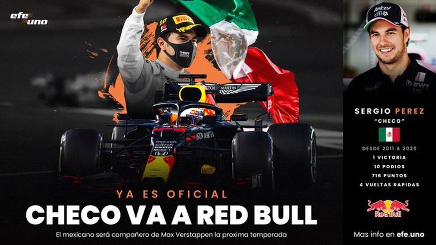 El mexicano Sergio Pérez sustituirá al tailandés Alexander Albon en Red Bull en 2021 y será el compañero del neerlandés Max Verstappen, anunció la escudería de F1 este viernes en un comunicado.