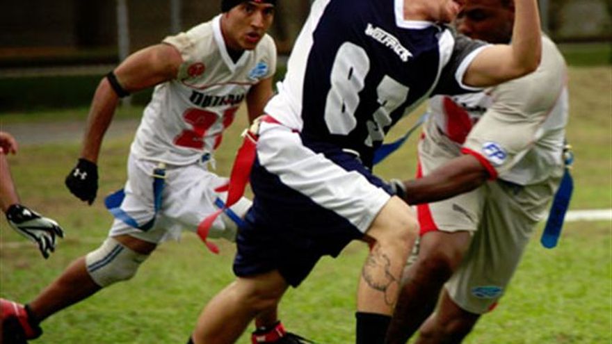 La tercera semana de la Panama Flag League (PFL) comenzó el pasado martes en la cancha “mother” de Clayton, con 2 partidos. Dos equipos invictos, Sharks y Kings (2-0) se enfrentaban para definir al lider de la Conferencia Pacífica. En el segundo partido, los Chingueros (0-1) estaban buscando su primera victoria en contra de los Elks (1-0) Sharks 26 Kings 0 Los Sharks derrotaron a los Kings 26-0, imponiendose a a los Kings y su formación “Wildcat” manejada por Edgardo Morcillo. La defensa de los Sharks frustró a la ofensiva de los Kings, parando su corrida por la cual se han destacado en esta temporada. Gerardo Valderrama lideró la defensa con 5 tackles y la defensiva no permitio puntos por el tercer juego consecutivo. La defensa frenó a los Kings en la yarda 1, al igual que pararon a los White Sharks en la misma situación la semana pasada. Jaime Carrizo corrió su ofensiva casi perfectamente, completando 20 pases de 27 intentos, con tres anotaciones. Vadir Murillo lideró a los Wrs de los Sharks con 6 recepciones y una anotación. Los Sharks corrieron la bola solamente 5 veces, pero para avances importantes. Chingeros 32 Elks 0 La nueva cara de los Chingueros, la defensa, blanquio a Joel Diaz y su ofensiva causando 4 intercepciones. Diego Cohen tuvo 5 pases de anotación, conectando 3 veces con Juan Antonio Alfaro. La lluvia que estaba cayendo en el campo no le causó problemas a los Chingueros, quienes avanzaron metódicamente con pases cortos, para después tirar pases largos y anotar puntos. Restan por jugar: Oct. 7 Cascarita Tapia 9:00 PM Gorillaz vs. Clovers Oct. 7 Cascarita Tapia 10:00 PM Titans vs. Lions Oct. 9 Albrook 1 1:00 PM Inmortals vs. Momi Convicts Oct. 9 Albrook 1 2:15 PM Wolfpack vs. Chingueros Oct. 9 Albrook 1 3:45 PM Outlawz vs. Vikings Oct. 9 Albrook 2 1:00 PM Couch Potato vs. White Sharks Oct. 9 Albrook 2 2:15 PM Frogs vs. Tynakers Oct. 9 Albrook 2 3:45 PM Bulldogs vs. Terps Oct. 9 Clayton 3:45 PM +23 vs. Rhinos