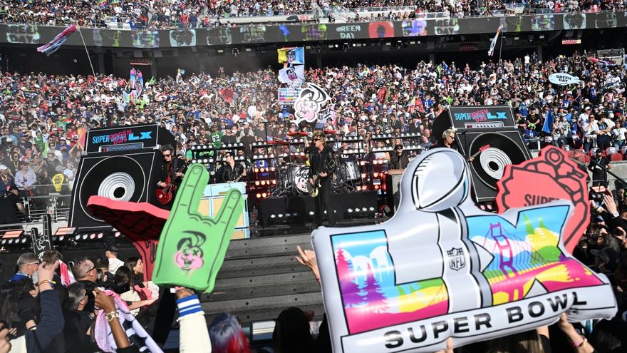 La banda de punk rock cerró su breve pero potente recital con la popular "American Idiot" frente a una audiencia televisiva estimada en más 120 millones de espectadores incluido el propio Trump, que este año no viajó al evento.