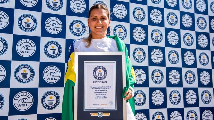 El Libro Guiness ha certificado que la surfista brasileña Maya Gabeira es la mujer que ha logrado sortear con su tabla la ola más grande, de 20,72 metros, en una playa de la región Centro Portugal en la que hace cinco años casi pierde la vida.
