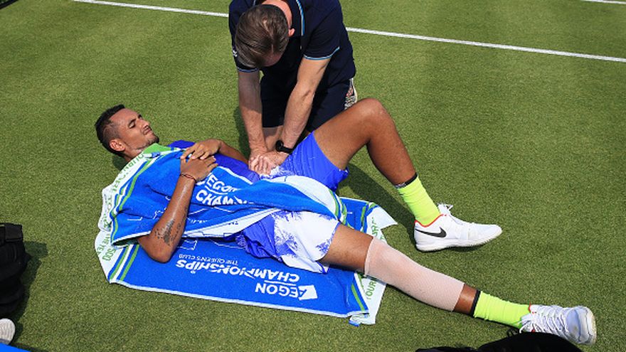 El tenista australiano Nick Kyrgios, N. 20 del mundo, se vio obligado a abandonar este lunes el Torneo de Queen's al lesionarse durante el partido de la primera ronda frente al estadounidense Donald Young, 55 del mundo.