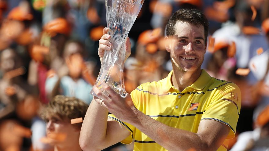 El estadounidense John Isner ganó este domingo el Masters 1000 de Miami al vencer al alemán Alexander Zverev en la final por 6-7 (4/7), 6-4, 6-4.