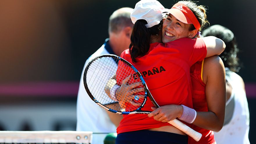 Muguruza había colocado a España con 1-0 tras ganar a Francesca Schiavone 7-6 (7/4) y 6-0 y Carla Suárez destrozó posteriormente a la finalista del Abierto de Estados Unidos Roberta Vinci, a la que derrotó por un doble 6-1.