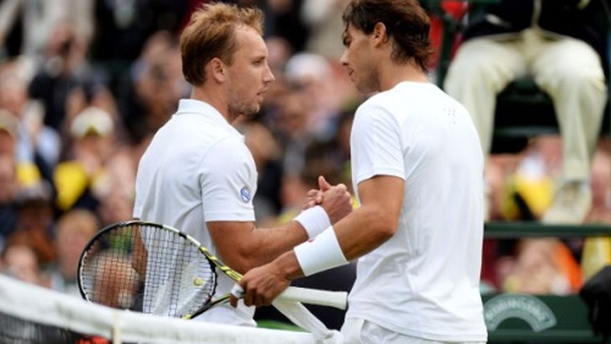 Steve Darcis, un belga de 29 años que figura 135 en el ránking mundial, eliminó el lunes en sets corridos a un Rafael Nadal desconocido del torneo de Wimbledon en la primera ronda. Darcis peloteó a un Nadal que venía de ganar su octavo Abierto de Francia y se impuso 7-6 (4), 7-6 (8), 6-4, liquidando el duelo en el primer punto de partido que tuvo a su disposición. Nadal, cabeza de serie número cinco y quien estuvo inactivo siete meses luego de perder en la segunda ronda de Wimbledon el año pasado por problemas en la rodilla izquierda, pareció tener algún problema físico. Se lo vio lento y falto de fuerza en las piernas para sacar sus tiros. Por momentos incluso pareció renguear. Darcis era tal vez el más sorprendido con su victoria. "Rafa Nadal no jugó como puede hacerlo hoy", declaró el belga. "el primer partido en el césped es siempre difícil. Traté de subir a la red a la menor oportunidad, no jugar desde el fondo, y todo salió bien". Fue la segunda eliminación temprana seguida de Nadal en Wimbledon, ya que el año pasado cayó en la segunda ronda ante Lukas Rosol, quien estaba 100 en el mundo. Después de esa derrota, el español se alejó del tenis para recuperarse de sus molestias en la rodilla. Tras su regreso este año, llegó a la final de los nueve torneos en que participó, ganando siete de ellos. Se marginó del torneo de Halle, Alemania, y vino a Wimbledon sin haber jugado un solo torneo en césped. Lo pagó caro. Es apenas el primer jugador eliminado en la primera ronda de Wimbledon después de ganar en Roland Garros desde que el brasileño Gustavo Kuerten corrió esa suerte en 1997. Darcis, quien hasta ahora había ganado una sola vez en Wimbledon, hizo el partido de su vida, jugándose en cada remate y paseando a su rival por toda la cancha. Acabó el duelo con un as, que Nadal ni siquiera intentó devolver. La de Darcis fue la segunda sorpresa de la jornada inaugural. La puertorriqueña Mónica Puig había dado la primera al derrotar a Sara Errani, cabeza de serie número cinco, 6-3, 6-2. Roger Federer, mientras tanto, inició la búsqueda de un octavo título en este torneo con una fácil victoria en sets corridos sobre Victor Hanescu que le tomó poco más de una hora. Al suizo le bastaron 68 minutos para destrozar al rumano 6-3, 6-2, 6-0. En otros partidos, Jo-Wilfried Tsonga (6) le ganó a David Goffin 7-6 (4), 6-4, 6-3 y Marin Cilic (10) despachó a Marcos Baghdatis 6-3, 6-4, 6-4. Entre las mujeres, Victoria Azarenka (2) venció a Maria Joao Koehler 6-1, 6-2 y María Sharapova (3) superó a Kristina Mladenovic 7-6 (5), 6-3. También ganaron Caroline Wozniacki (9) y Ana Ivanovic (12).