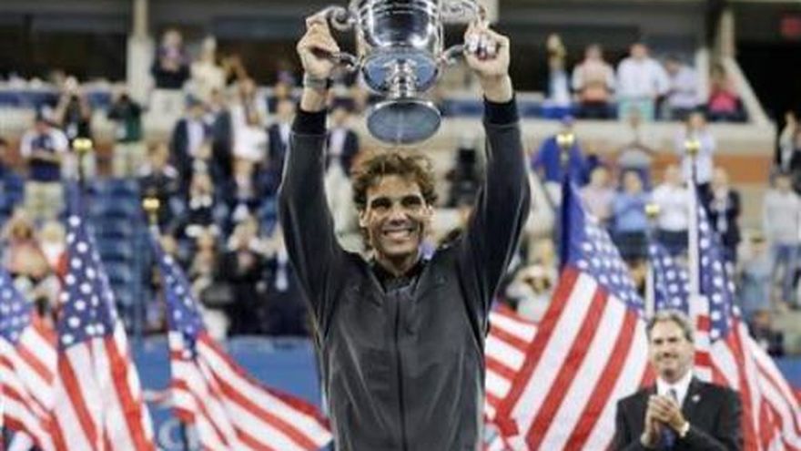 Rafael Nadal apeló a todo su espíritu de gladiador y desinfló la moral de Novak Djokovic en el momento más preciso para alzarse el lunes con su segundo campeonato del Abierto de Estados Unidos. Cuando parecía que el tercer set se le escapaba, Nadal levantó tres bolas de quiebre y seguido apretó el pulso para encaminarse a una victoria 6-2, 3-6, 6-4, 6-1 en otro vibrante episodio de la rivalidad entre los dos primeros del tenis mundial. Con la reina Sofía de España en un palco, Nadal conquistó su 13er título de Grand Slam, situándose en el tercer lugar de la lista histórica. Con 27 años, el español ahora sólo es superado por Roger Federer (17) y Pete Sampras (14). "Te le mereces", se escuchó que dijo el serbio Djokovic a Nadal, cuando se fundieron en un abrazo en la red tras el magnífico duelo de3 horas y 21 minutos. "Nadie puede llevar mi tenis a los límites como él", dijo Nadal tras recibir el trofeo de campeón. El choque número 37 entre los dos no decepcionó, siempre cargado con el tenis de primer nivel y la tensión pura que les caracteriza. Los intercambios de golpes, inclusive uno de 54, hicieron levantar de sus asientos una y otra vez a los espectadores en el estadio Arthur Ashe. La clave del partido estuvo en el tercer parcial. Djokovic logró emparejar el partido con una sucesión de tres quiebres de servicio para ganar la segunda manga y se adelantó 2-0 en la tercera. Era su mejor momento, ya que Nadal apenas había cedido su saque una vez en todo el torneo. Nadal estuvo a punto de sufrir otra rotura de servicio que le hubiese dejado 3-0 abajo, pero aguantó. Y luego llegó la secuencia. Con el set 4-4, Djokovic acarició el quiebre al poner la situación en 0-40. Ahí fue cuando apareció con todo su esplendor la garra de Nadal, que volteó el game, se fue arriba 5-3 y luego quebró el saque de Djokovic remontándole un 30-0. Nadal celebró eufórico: tirado de rodillas en el piso, y apretando el puño. Se había robado el set... y el partido. Fue la tercera vez en cuatro años que Nadal y Djokovic se midieron en la final del US Open. Nadal ganó el primer asalto en 2010 y perdió en la revancha en 2011. Ahora el español manda en Nueva York y con su tercer triunfo domina 22-15 el historial. Parece asombroso, pero hace un año se temía que Nadal no estaría disfrutando estos momentos. Por culpa de una lesión en la rodilla izquierda, el astro ibérico se ausentó de la pasada edición del US Open. Tras una ausencia de siete meses, reapareció en febrero pasado en el balneario chileno de Viña del Mar. Sufrió una derrota en la final ante el argentino Horacio Zeballos. Ya casi nadie se acuerda de eso. Su temporada ha sido brillante. El rey de la arcilla está impecable en superficies duras con una marca de 22-0 y sólo ha perdido tres de 63 partidos este año. También ha ganado nueve títulos, incluyendo su octavo cetro del Abierto de Francia. La consagración en el polvo de ladrillo parisino le permitió convertirse en el primer hombre con al menos un título de Grand Slam en nueve temporadas consecutivas. Pero después tropezó en Wimbledon al caer a las primeras de cambio ante Steve Darcis, un belga que era el 135 del mundo en ese momento de junio. Se tomó unas semanas de descanso en Palma de Mallorca y, con las baterías recargadas, encaró la temporada de torneos de fin de verano en pistas de cemento en Norteamérica. Arrasó con todo, en Montreal y Cincinnati, y es el único que puede presumir de dos títulos grandes en el año. Si bien no logró desplazar a Djokovic del primer lugar del escalafón, su ascenso posterior a la cima sería inevitable, al considerar que le pisa los talones al serbio y no defiende puntos hasta febrero.