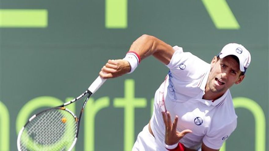Novak Djokovic se adjudicó el domingo su tercer título en el Masters de Miami al imponerse en la final 6-1, 7-6 (5) sobre Andy Murray. Djokovic revalidó el título del torneo, del cual salió campeón en 2007. Pete Sampras, con seis conquistas, es el tenista más laureado en Cayo Vizcaíno. El número uno mundial sólo encaró una bola de quiebre en el duelo, en el quinto game, y el serbio lo levantó. En el desempate del segundo set, Djpkovic perdió solamente un punto en su saque y se despegó definitivamente cuando Murray cometió una doble falta para irse arribe 3-2 y selló el triunfo cuando el escocés mandó desviado su último disparo. Djokovic no perdió un set en seis partidos, y levantó 25 de 30 bolas de quiebre en su contra. Mejoró a 20-2 su récord este año, y a 90-8 desde el inicio de 2011. Ha ganado cinco títulos de Grand Slam, incluyendo los tres últimos. Lo que sigue ahora es la temporada en arcilla, culminando con el Abierto de Francia, el único torneo que Djokovic no ha ganado. Murray, cuarto preclasificado, estaba fresco pero algo fuera de ritmo. Apenas disputó tres partidos para llegar a la final y no tuvo que actuar en las semifinales debido a la baja por lesión de Rafael Nadal. Avanzó gracias a victorias fáciles y éste fue su primer encuentro desde el miércoles, lo cual podría haber explicado su arranque lento. El desigual resultado del primer set fue un poco engañoso, pero Djokovic ganó los puntos cruciales y cerró la manga, que duró 47 minutos, sirviendo un as. Djokovic se vio más exigido en el segundo set y en más de una ocasión azotó las manos contra las caderas en señal de frustración, pero su servicio lo sacó de problemas repetidas veces. Cuando Djokovic aseguró el triunfo, gritó junto con el rugido de la multitud, miró hacia el cielo, cerró los puños y acercó los codos al cuerpo, una rutina con la que suele celebrar sus triunfos. Murray también perdió la final de 2007 ante Djokovic, pero ganó el torneo en 2009.